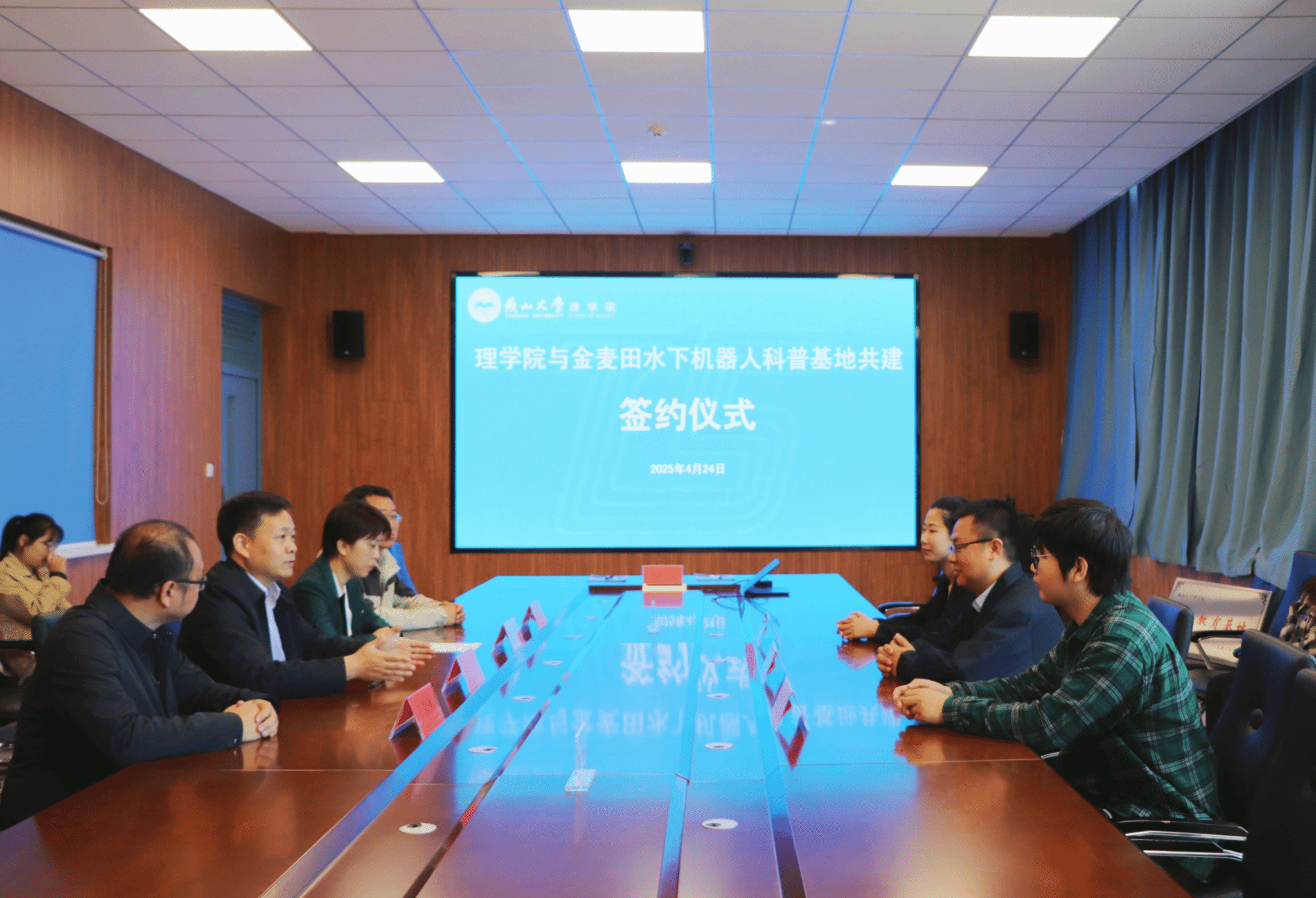 2025-04-304月25日上午,理学院与金麦田水下机器人科普基地共建科普教育基地签约授牌仪式在理学楼A301会议室圆满举行。学院院长王明利、党委副书记曾慧、副处级专职辅导员王景琳、实验中心副主任赵志鹏,以及金麦田水下机器人科普基地负责人孔凡城、陈宇、安昊天等双方代表共同出席了本次仪式。仪式上,王明利代表学院对金麦田水下机器人科普基地一行的到来表示热烈欢迎。他指出,此次合作是学院与基地优势互补、资源共享之举,双方将携手...