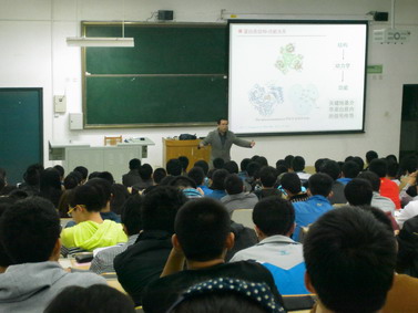 3月26日晚19:30在东校区第四教学楼209室,理学院应用物理系主任苏计国副教授应邀作了《大学物理》专题报告,理学院党委书记和部分教师以及约300余名学生参加了报告会。整场报告,苏计国副教授激情四射、声情并茂,其生动的比喻和风趣的语言给在场师生留下了深刻的印象。