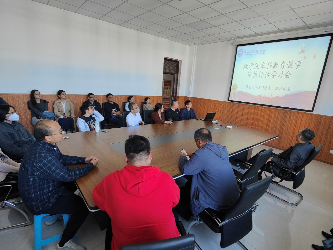 为积极响应学校本科教育教学审核评估工作号召,深化全体教师对审核评估重要性的认识,明确各自在评估工作中的职责与任务,理学院信息与计算科学系和统计学系于2024年10月10日下午,在理学楼A508教室联合举办了本科教育教学审核评估知识学习会。