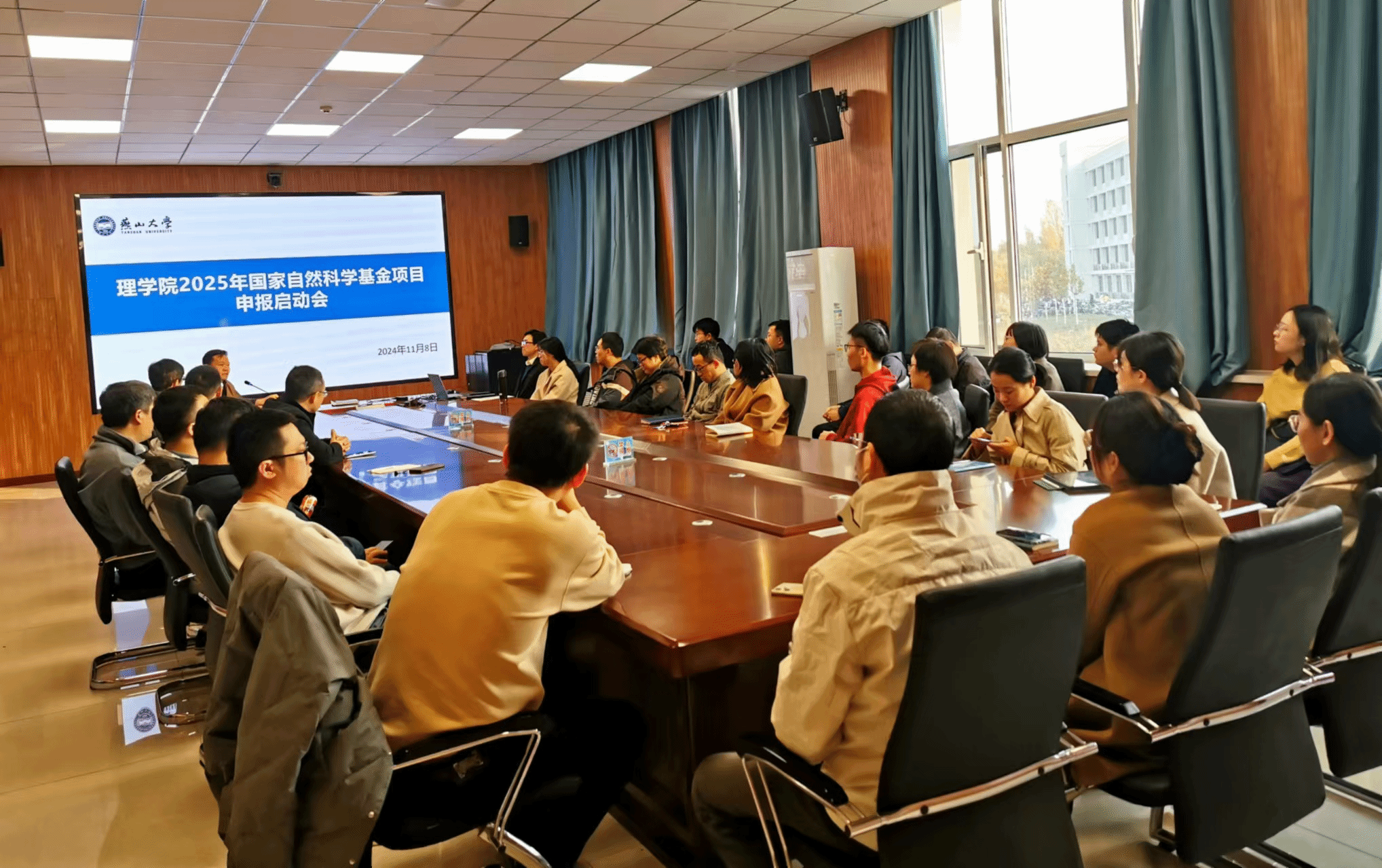 为做好2025年国家自然科学基金项目申报工作,提升项目申报质量和资助率,11月8日下午15:00,理学院于理学楼A301召开2025年国家自然科学基金申报启动会。副院长王明利(主持工作)、副院长胡林敏、各系主任、近三年入职青年教师及其他拟申报教师等40余人参加会议,会议由胡林敏主持。