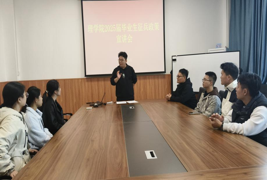 为积极响应国家号召,贯彻落实征兵工作,营造浓厚的参军报国氛围,切实激发学生参军报国热情,理学院面向2025届本科毕业生的征兵政策宣讲会于11月8日下午3点在理学楼A508召开。毕业生辅导员王强主持会议,2022级本科生辅导员张鹏飞介绍征兵政策,2025届本科毕业生有参军意向的同学参会。