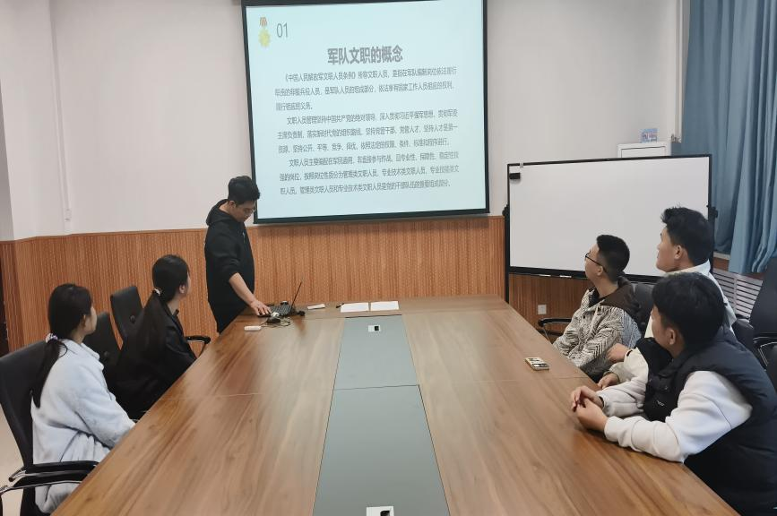 随后,张鹏飞讲解了征兵政策,详细阐释了国防建设之于国家的重要意义,讲解了征兵入伍的条件及应征报名流程,如报名、体检、政审、役前训练等,并系统地介绍了大学生参军的优势及退伍后优抚安置政策。此外还对军队文职招考政策、报考条件及待遇等问题进行了讲解。