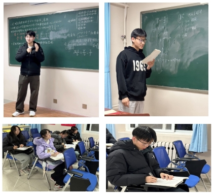 在讲授过程中,郭美歌就《高等数学》中极限、微分、积分的内容,通过建立知识框架、以题带点的形式,帮助同学们了解如何有效读题、打开解题思路、掌握解题技巧。针对《解析几何》,李健、张佳伟凭借扎实的知识基础和清晰的逻辑思维,系统梳理了核心知识点,从坐标系的基本概念,到共轴平面系的复杂理论,到旋转体的空间想象,再到向量的内积、外积与多重乘积等关键内容,通过构建逻辑框架、借助直观图形、进行实例分析,化繁为简,让复杂知识变得通俗易懂。在答疑环节,主讲人针对同学们提出的具体问题,结合历年期末考试真题和典型例题,对混合积求解、平面与直线的关系、旋转体分类以及直线标准方程求解等高频考点进行了详细解答。