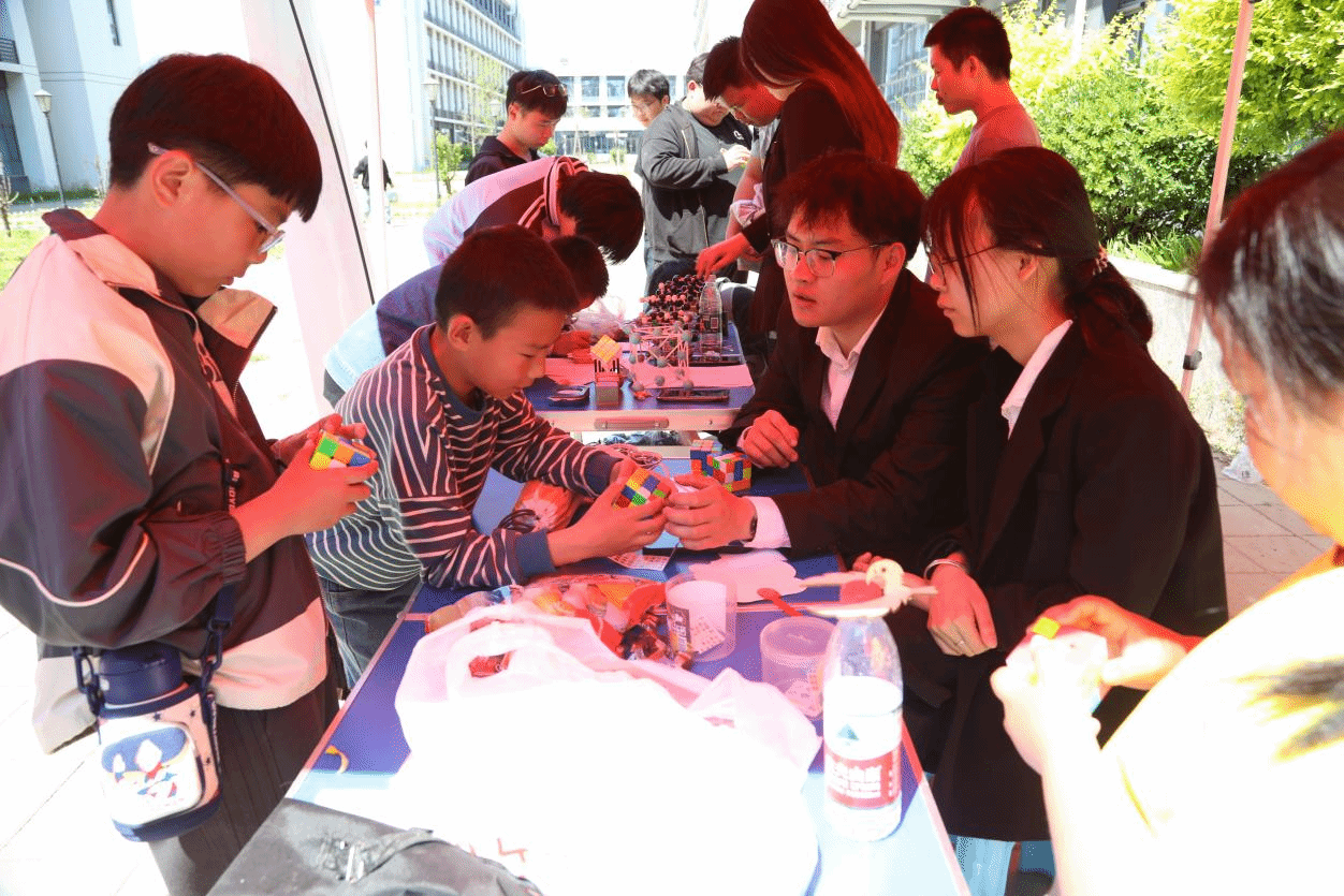 在理学楼广场分会场设置了“数学逻辑谜题”“魔方数字挑战赛”“数海扬帆,知趣飞行棋”等多个互动游戏区。参与者通过破解数学谜题、完成团队协作任务赢取纪念品,现场气氛热烈非凡。同学们在轻松愉悦的氛围中,切身体会到数学的趣味性与实用性。不少参与者表示,这些游戏让他们重新认识了数学的“亲民”一面。