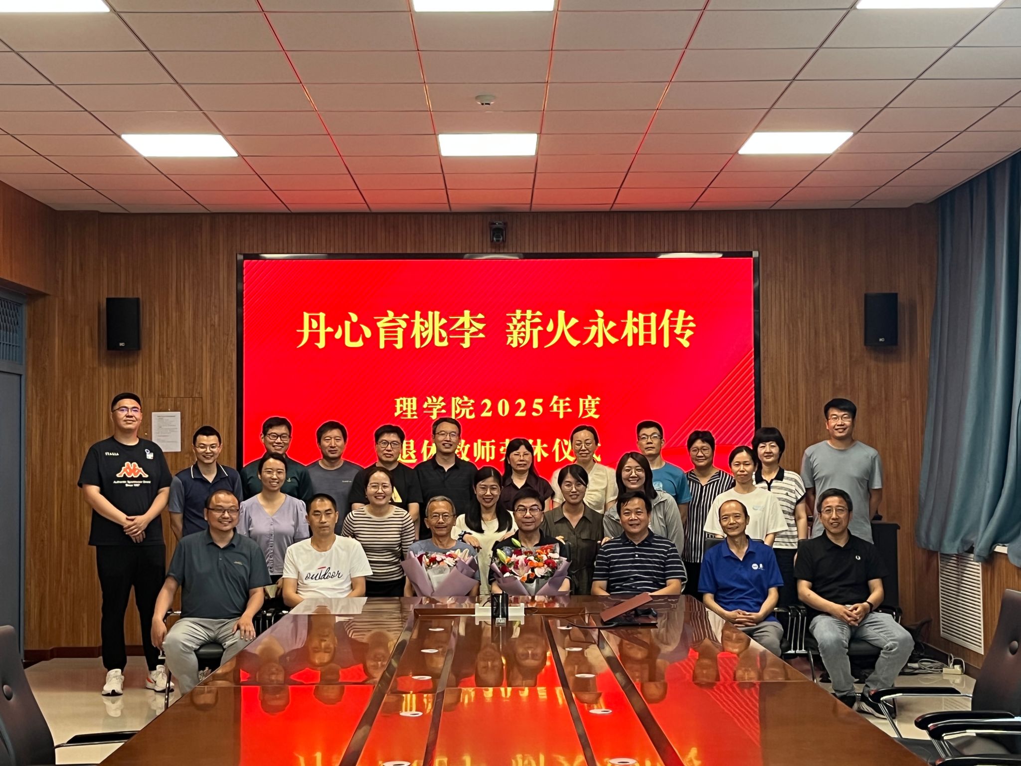 最后,全体参会人员合影留念,定格这一温馨时刻。此次仪式是对四位教师辛勤付出的肯定与感谢,更是学院文化与精神的传承延续。相信在四位荣休教师的精神激励下,理学院全体师生将携手共进,书写更加辉煌的篇章。