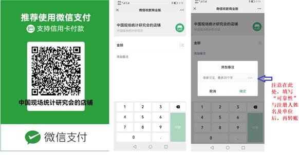 本次会议注册费由中国现场统计研究会统一收取,缴费方式包括转账汇款或扫码支付,可选择任一方式注册缴费。特别提醒,请您注册缴费时,备注“可靠性”字样,以便学会核对查收会议注册费。