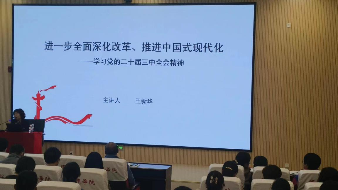 2024年10月10日下午1:30,校党委讲师团成员、马克思主义学院王新华教授受邀为理学院分党校第72期党员、发展对象、入党积极分子和党支部书记培训班学员讲授题为《进一步全面深化改革、推进中国式现代化——学习党的二十届三中全会精神》的主题党课。