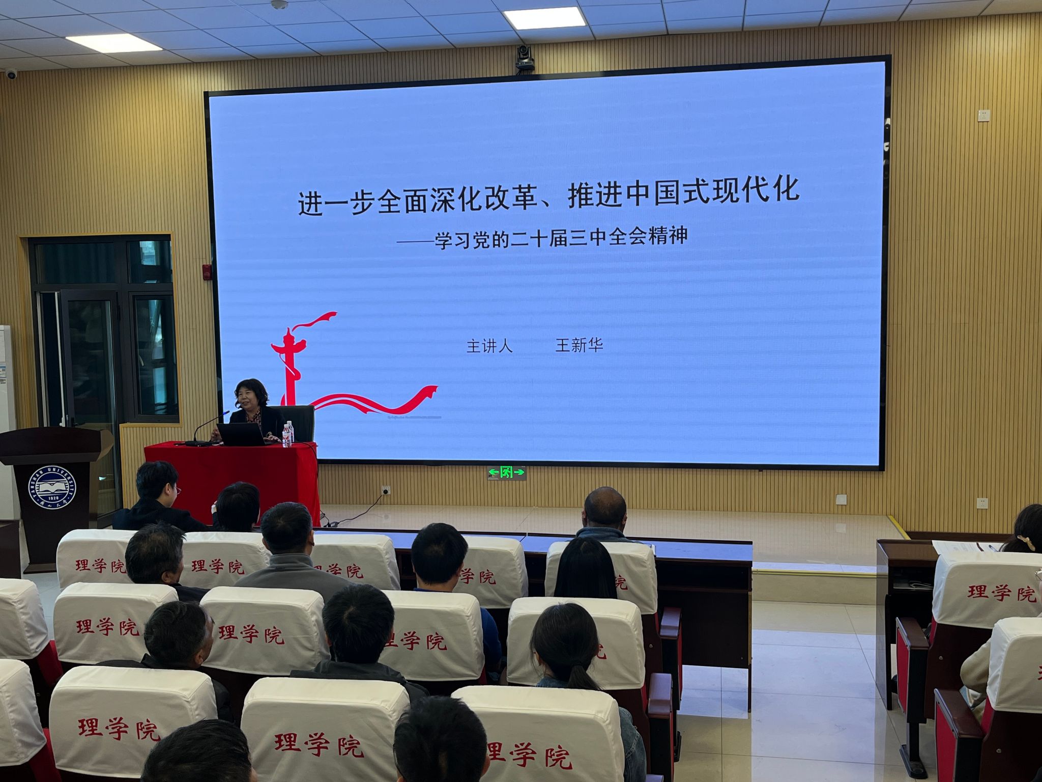 为深入学习领会党的二十届三中全会精神的深刻内涵,充分认清学习宣传贯彻党的二十届三中全会精神的重大意义,10月10日下午,理学院党委特邀马克思主义学院王新华教授做题为《进一步全面深化改革、推进中国式现代化——学习党的二十届三中全会精神》专题讲座。学院全体教职工及学生代表参加了此次专题讲座。