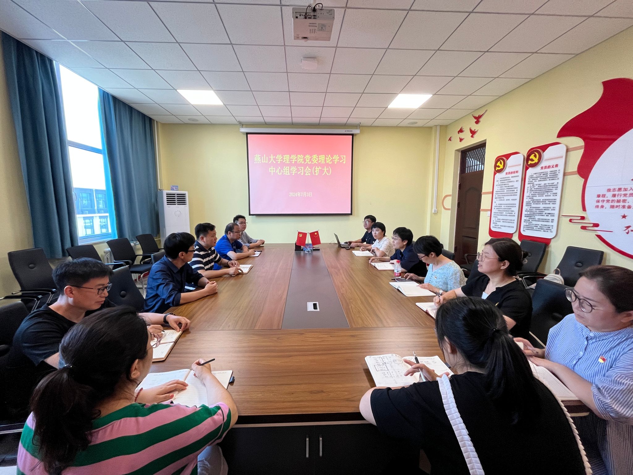 7月3日下午,理学院党委召开2024年第八次党委理论学习中心组(扩大)学习会。学院全体处级领导干部、党委委员、科级干部参加会议,会议由党委书记刘琳主持。