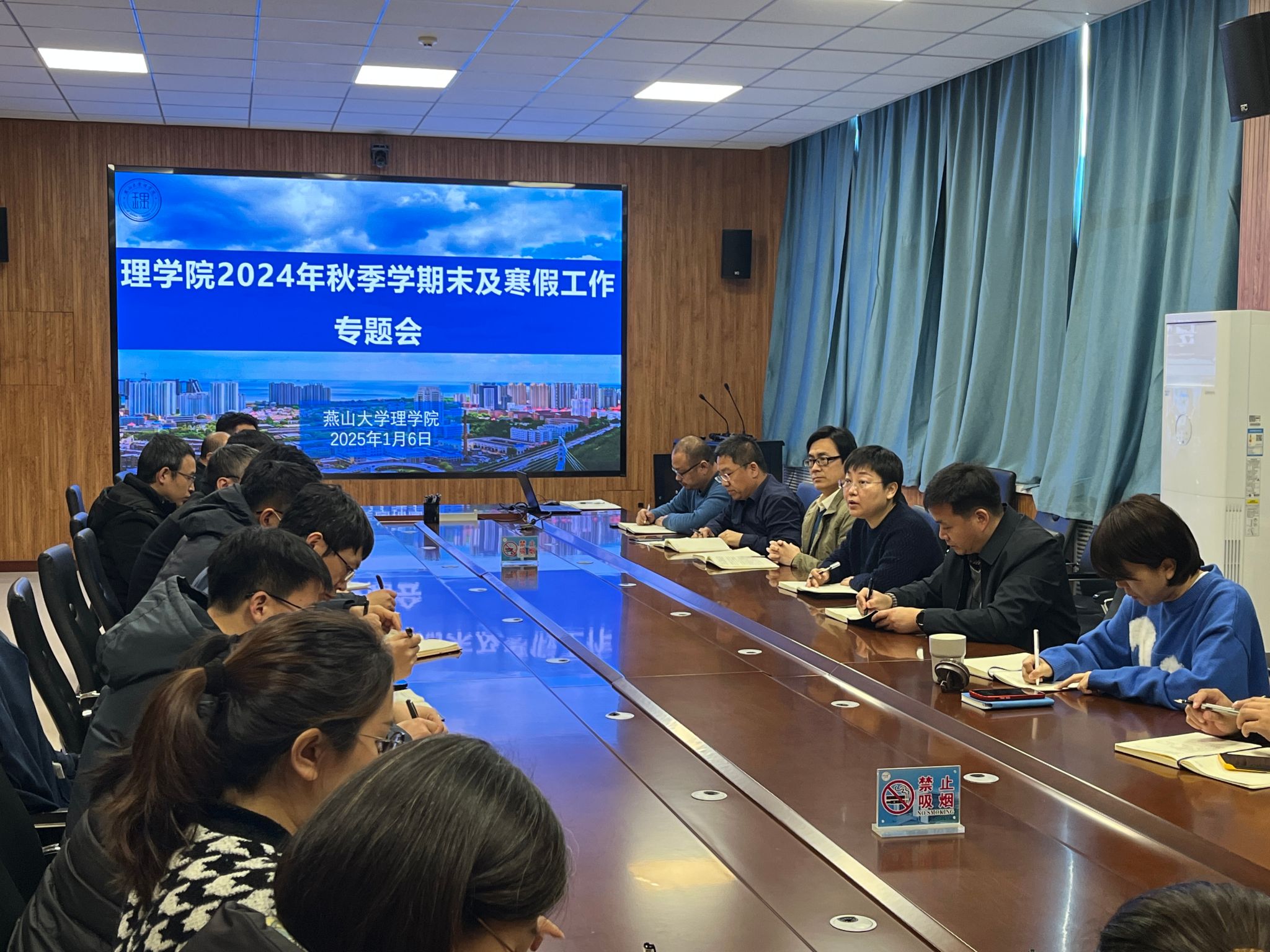 1月6日,理学院2024年秋季学期末及寒假工作专题会在理学楼A301会议室召开,学院领导班子、各系主任、科级干部以及党支部书记参会,会议由学院党委书记刘琳主持。