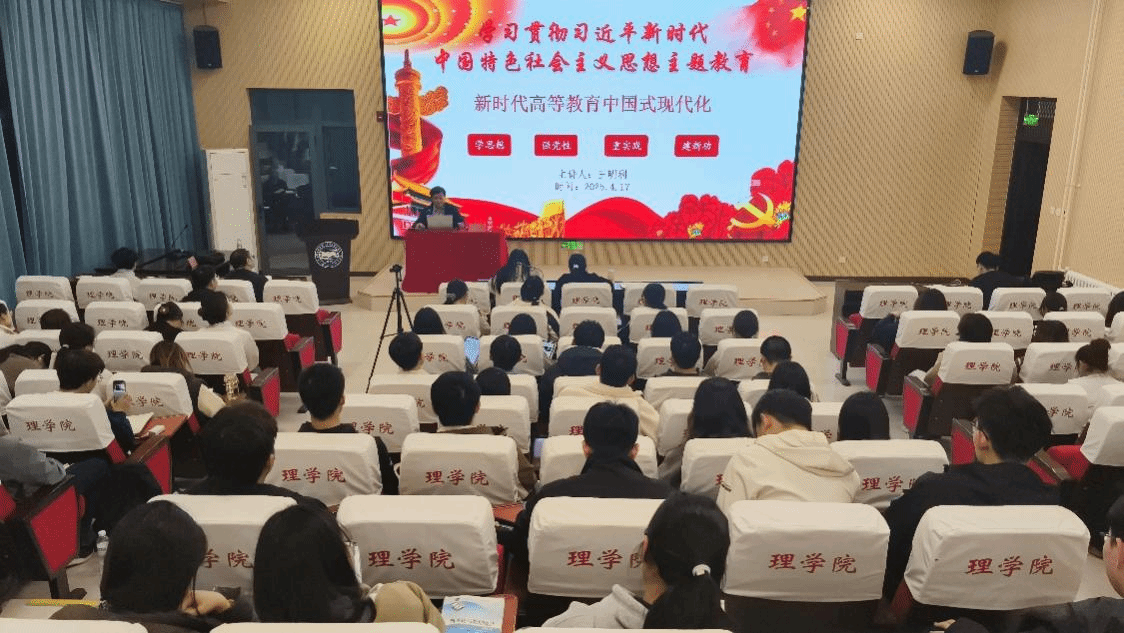 2025年4月17日晚上20:00,理学院院长王明利为理学院分党校第73期党员、发展对象、入党积极分子和党支部书记培训班学员讲授题为《新时代高等教育中国式现代化》的主题党课。