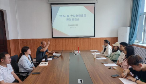 为加强师生之间的沟通与联系,深入了解学生的学习和生活状况,听取学生对大学物理课程的意见和建议,2024年5月23日,大学物理系在理学楼A508组织开展了2024春季学期大学物理课程师生座谈会,大学物理系主任、部分教师代表和学生代表参加了座谈会。