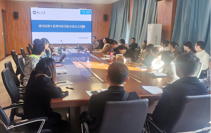 为进一步提升理学院青年教师的教学能力和业务水平,鼓励青年教师积极探索课堂教学规律和方法,理学院于2023年10月26日下午在理学楼A301室举办了理学院第十届青年教师教学基本功竞赛。此次竞赛邀请井西利、王明利、杜会静、李玉双、王艳宁等5名教师担任评委,学院9名青年教师参赛,20余名青年教师到场观摩竞赛。