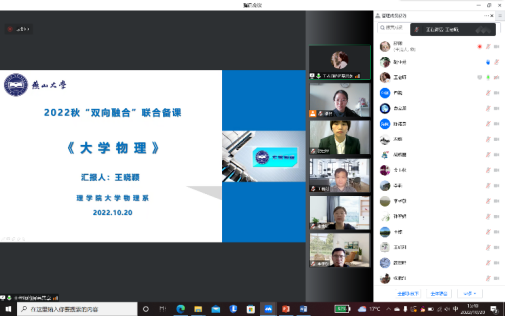 为深入贯彻高等学校本科教育工作会议精神,响应学校号召,将思想政治教育有机融入人才培养体系。2022年10月20日下午,大学物理系与马克思主义学院毛泽东思想和中国特色社会主义理论体系概论教研部联合开展了课程思政与思政课程“双向融合”备课教研活动。
