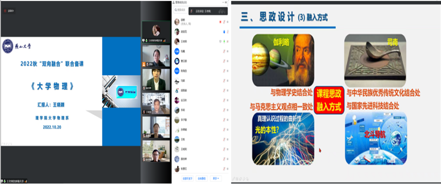为深入推进学院课程思政建设,将思想政治教育有机融入人才培养体系,深刻理解“全面推进课程思政建设是落实立德树人根本任务的战略举措”。2022年10月20日下午,理学院与马克思主义学院联合开展了课程思政与思政课程“双向融合”备课教研活动。