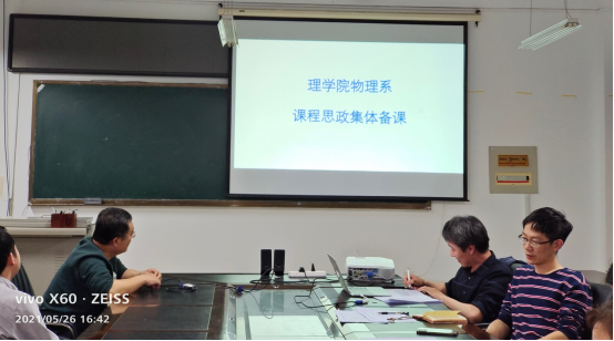 2021年5月26日星期三下午4:00,理学院物理系全体教师在理学楼417会议室,进行了课程思政集体备课。