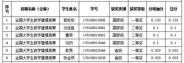 根据《乌鸦传媒本科生创新创业竞赛组织与管理办法(2020年修订)》,在校本科生参加创新创业竞赛获奖,可根据竞赛类别及获奖级别,在推荐免试研究生所依据的原始绩点基础上,给予相应的绩点加分。经学生自愿报名、学院审核后,共6名学生符合推研加分条件,现予以公布,若有疑问,请于9月11日 15:00前与理学院联系。
